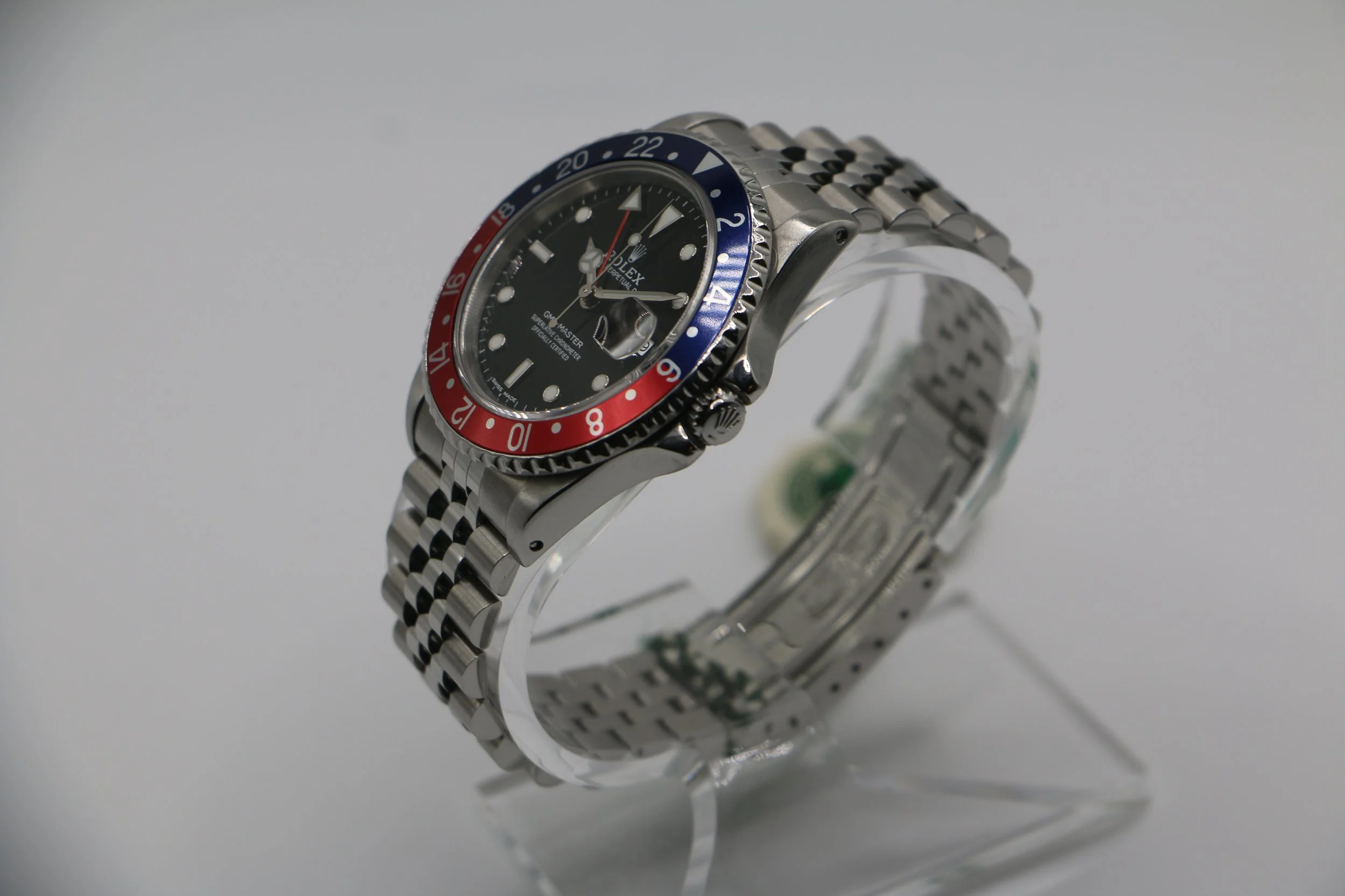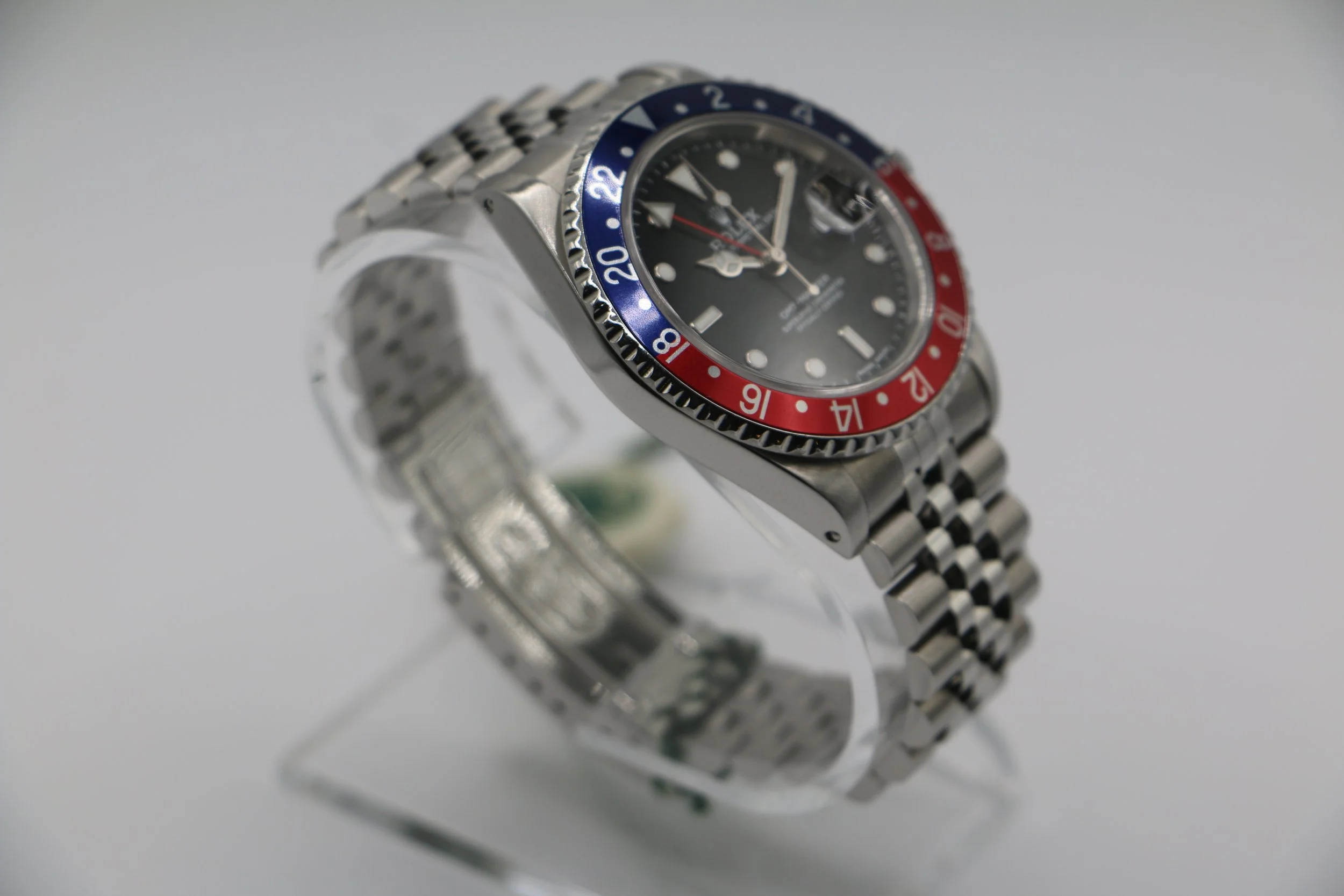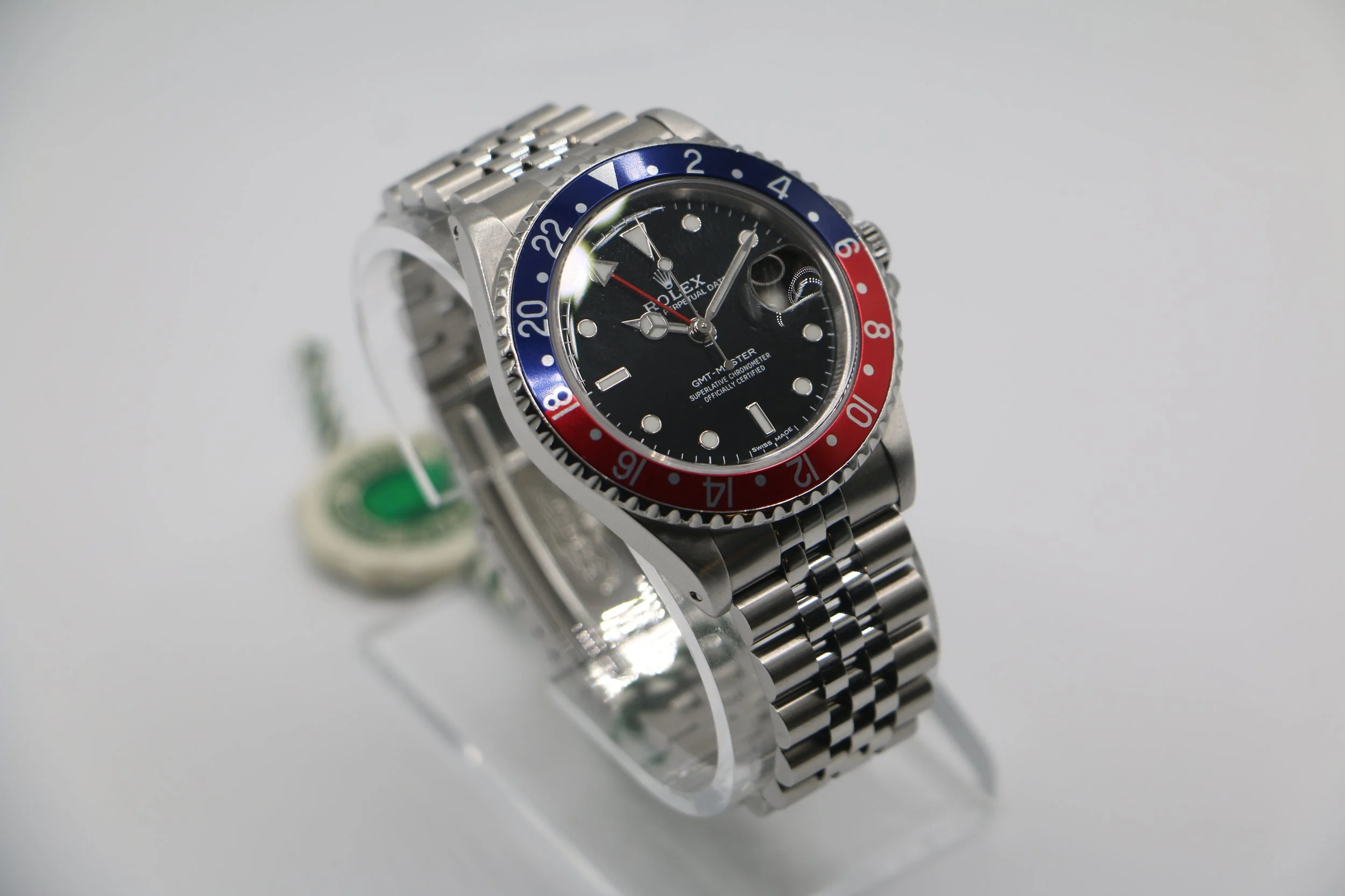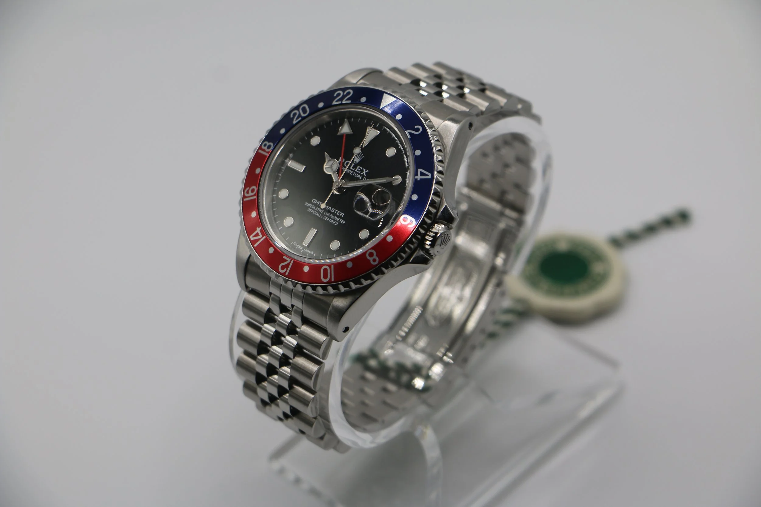 Weather your grilling on a Saturday or heading to the office on Monday this watch will fit all your stylistic needs. This is the Rolex GMT Master with a Pepsi bezel, Originally created for Pan Am so there pilots could keep home and current time zones when traveling. The watch community has nicknamed this the “Pepsi” One of the most sought after sport watches in the Rolex line up. And it could be yours today.